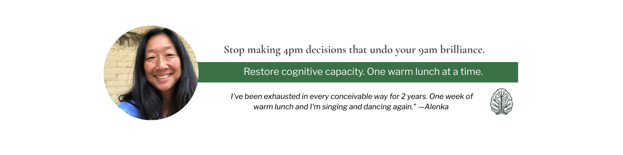 Restore the cognitive capacity your work depends on. One warm, on-time lunch reclaims your afternoon. Get the 7-day series: why fog might be a strategy, how one meal changes everything downstream, and the path from borrowed life to internal authority.