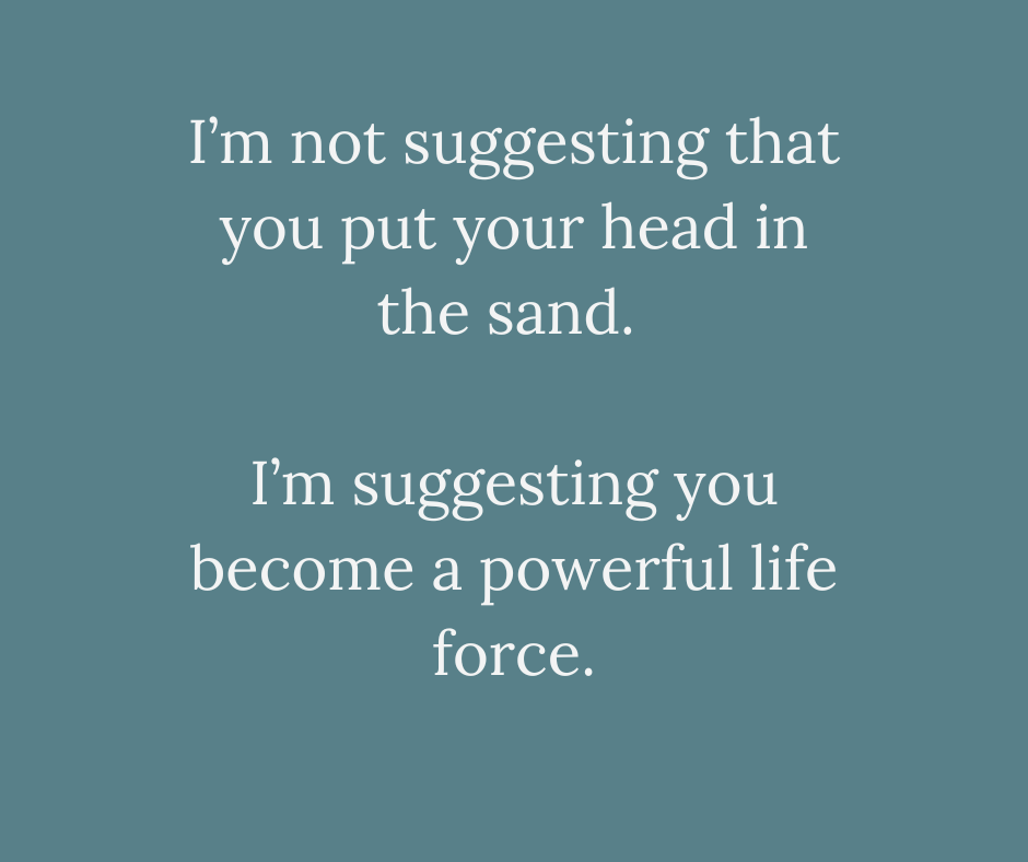 Ultimately you’ll need to be your own hero, and it’s important to not freak out because panic will sink you deeper into the sand. You’ll take a second (which is a lot longer than we often give ourselves) to quiet the mind, to connect with your mental faculties, and get present and responsive.