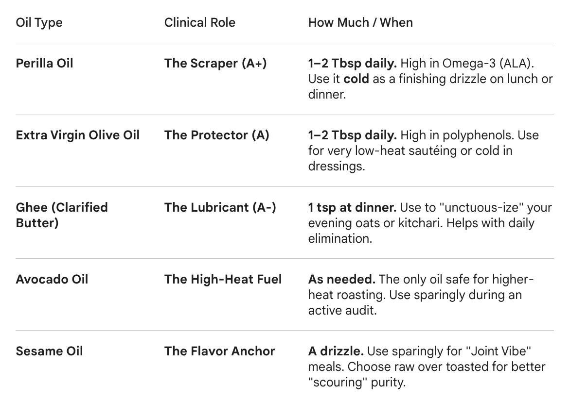 Below my signature, you'll find the full scraping reference: the foods, the oils, and why red wine isn't what you think it is.