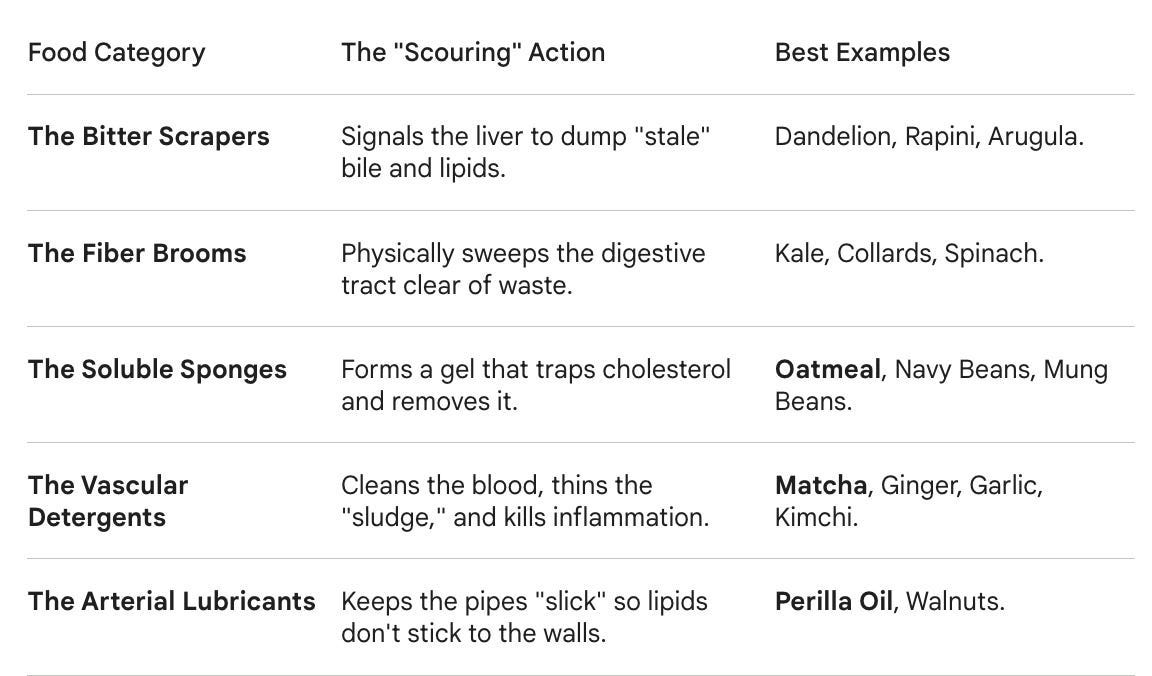The “Super-Scourers” (dandelion & rapini): Potent bitters that signal the liver to release stagnant bile and flush the system.