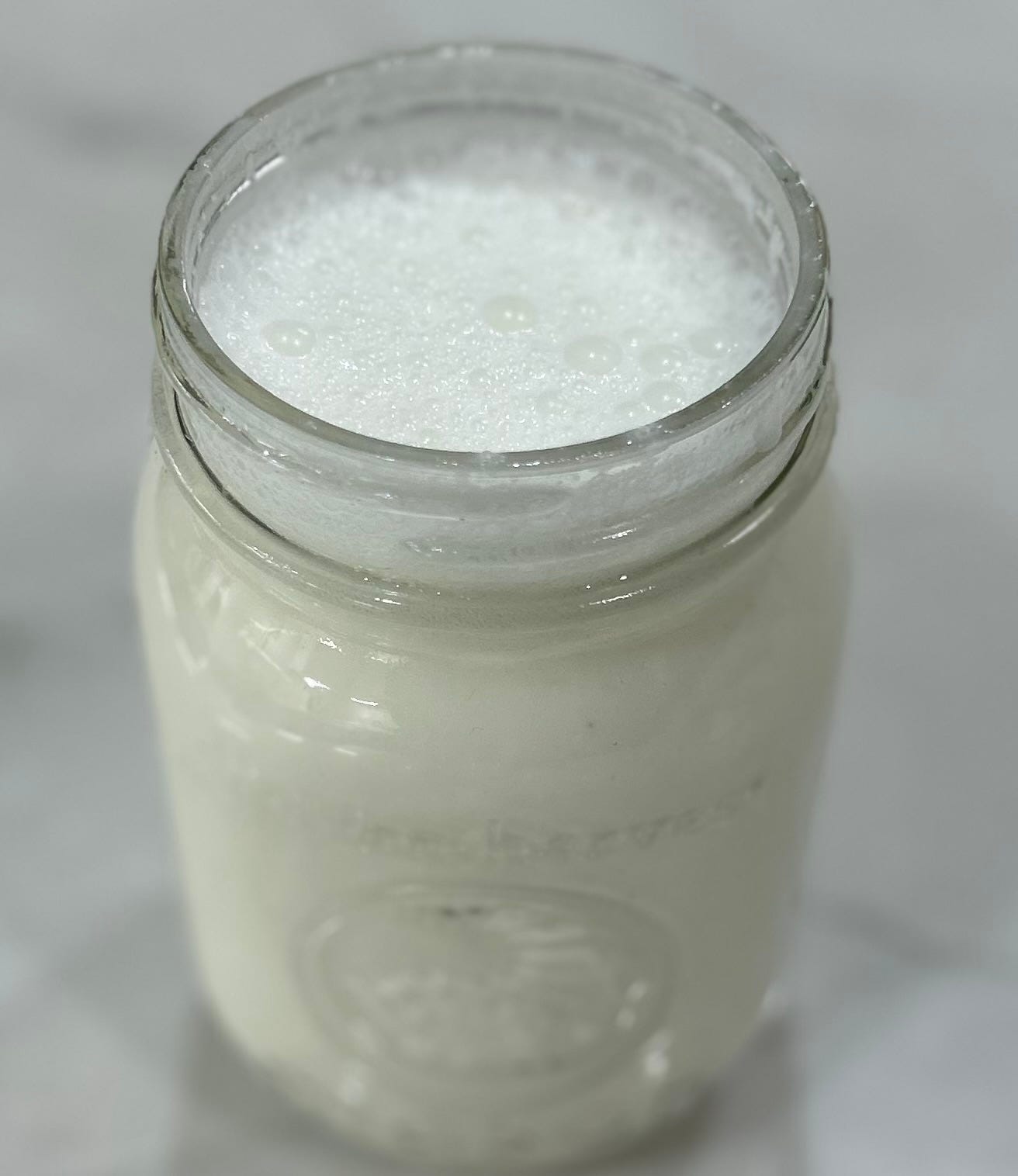 Fill your 8 oz glass 1/3 of the way up with yogurt and the rest with water. Sweeten with honey or maple syrup. I also add pinch of cardamom and some rose water. Cap and shake well or aerate with whisk until foamy on top. Golden Milk: