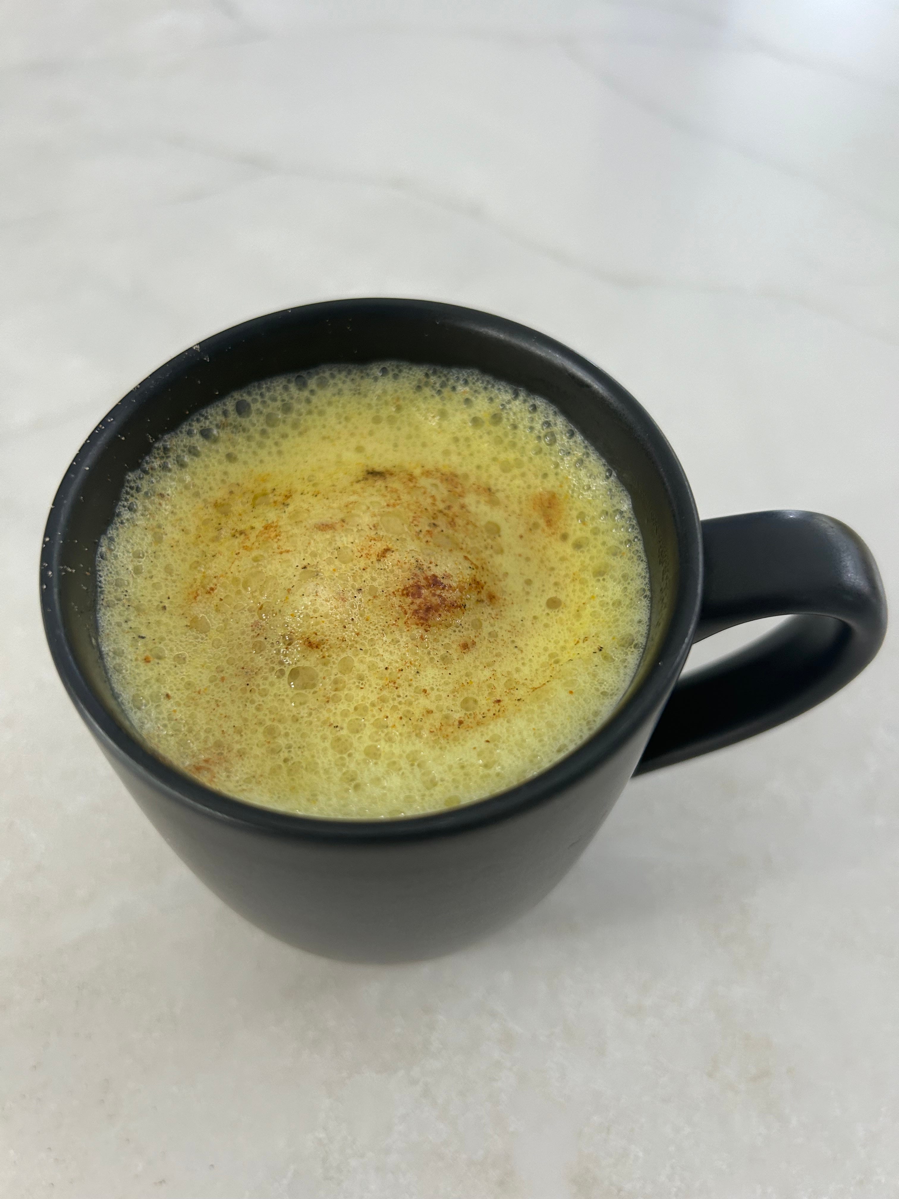 Golden Milk: 1/2 tsp of turmeric powder to 1 cup of milk. Optional adds: cardamom, cinnamon, cracked pepper. Pour and sweeten with honey or maple syrup. Recipe: