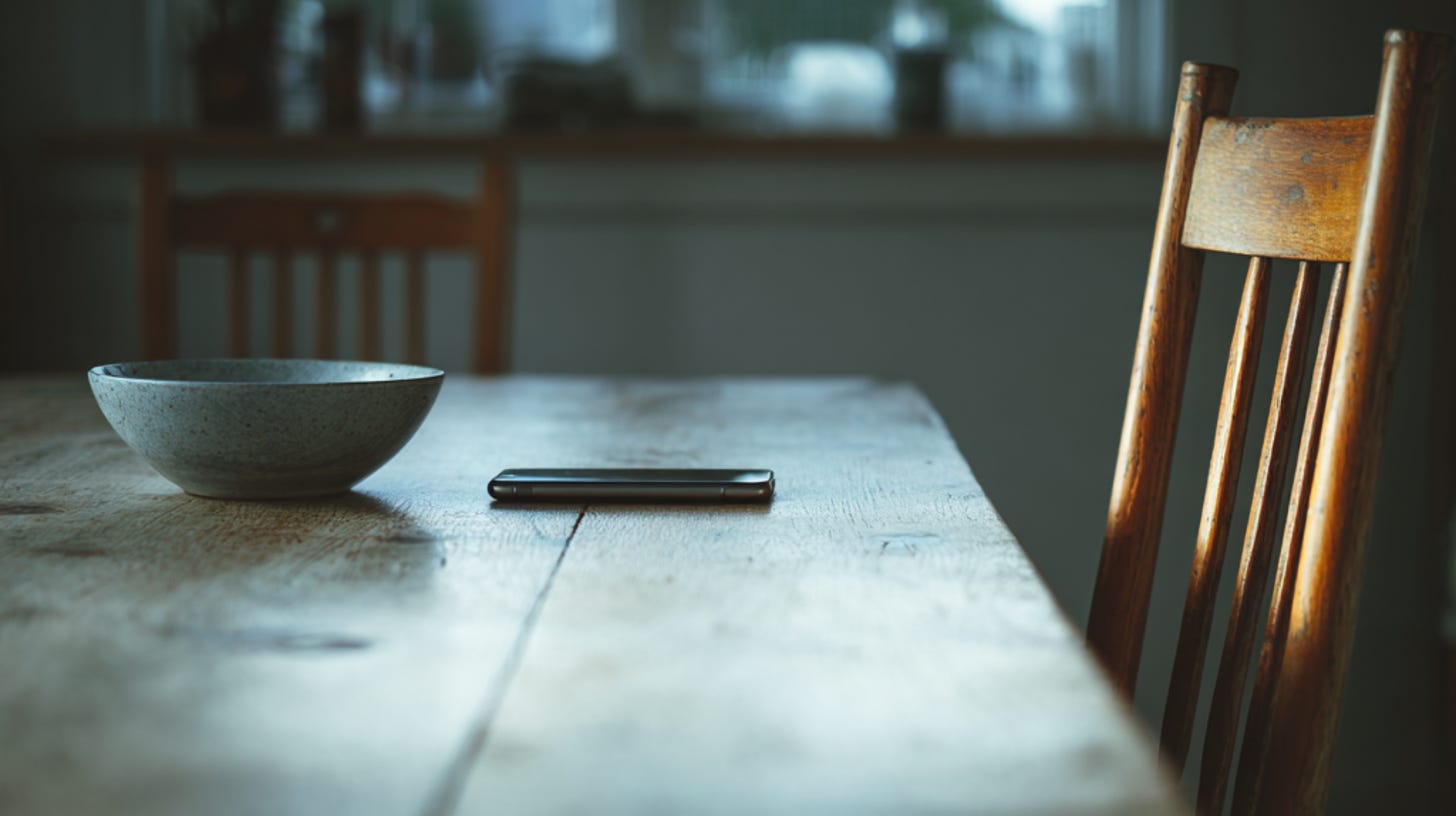 The first thing people notice when they try to eat lunch without their phone isn’t calm.
